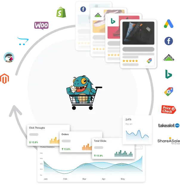 ShoppingFeeder is the industry-leading feed management platform trusted by merchants worldwide since 2014. Connect your Shopify, WooCommerce, Magento, or BigCommerce store to Google Shopping, Facebook, Amazon, and 1,000+ marketing channels. Our AI-powered tools optimize your product data to maximize visibility, clicks, and conversions across every channel.